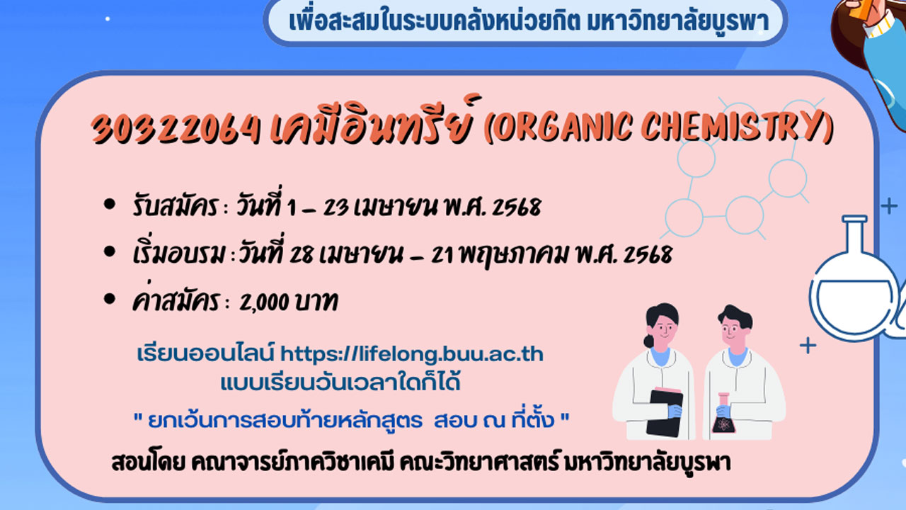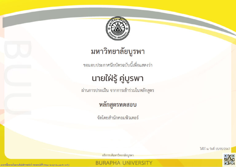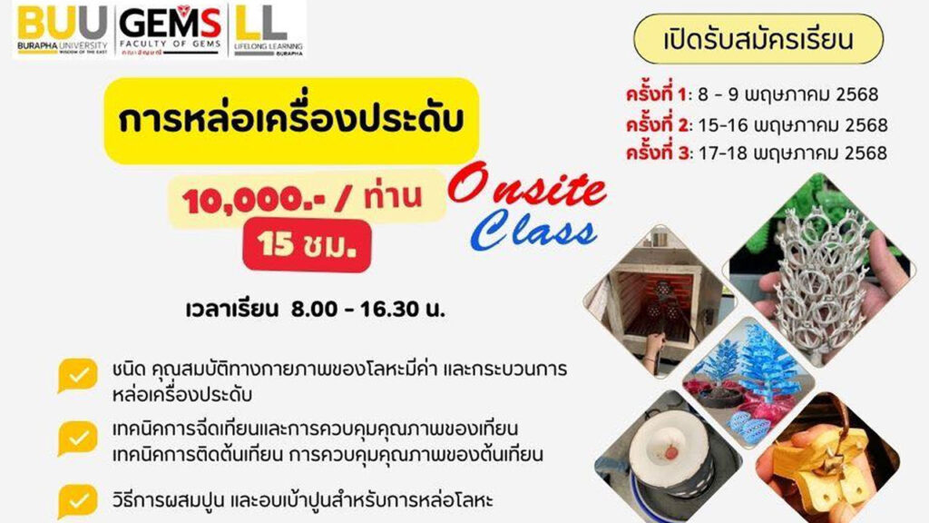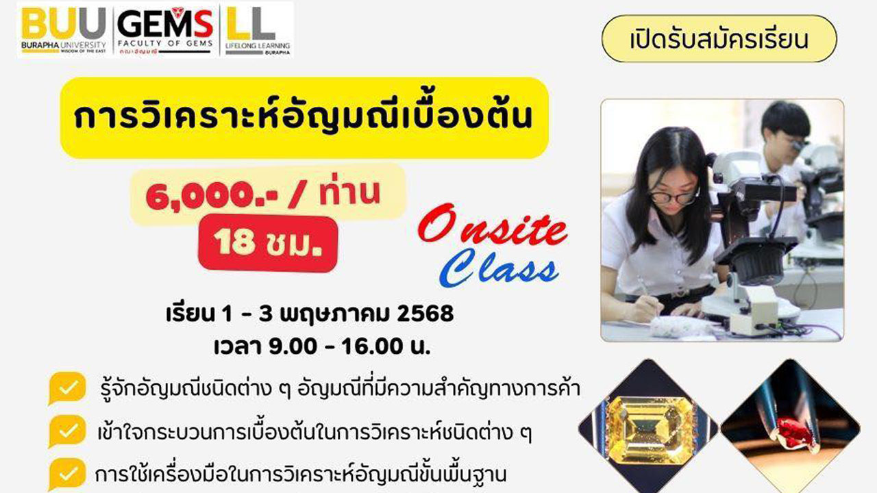BUU SHORT COURSE หลักสูตรระยะสั้นที่ออกแบบมาเพื่อ Upskill Reskill Newskill ให้กับผู้เรียนทุกช่วงวัย ดูเพิ่มเติม Become to "Lifelong Learner" on BUU SHORT COURSE ผู้ลงทะเบียน 0 K+ รายวิชาทั้งหมด 0 รายวิชา DEGREE 0 รายวิชา NON-DEGREE 0 BUU SHORT COURSE หลักสูตรระยะสั้น Upskill Reskill Newskill ที่ออกแบบมาเพื่อเพิ่มพูนทักษะ ความรู้ และสมรรถนะในด้านต่าง ๆ ให้กับผู้เรียนในทุกช่วงวัย ทั้งในรูปแบบ Online และ Onsite รองรับการพัฒนาตนเองอย่างต่อเนื่องและตอบสนองความต้องการของตลาดแรงงานในยุคปัจจุบัน ประกาศนียบัตรรับรองความสามารถตามมาตรฐานหลักสูตร เรียนรู้ได้ทุกช่วงวัย หลักสูตรเปิดกว้างสำหรับทุกคน Skill Mappingแสดงทักษะที่ผ่านการเรียนรู้ สะสมหน่วยกิตเก็บสะสมบนระบบ Credit Bank Course หลักสูตร BUU SHORT COURSE จากคณะและส่วนงานภายในมหาวิทยาลัย การประดาน้ำ 💵 13,000 บาท 🏢 คณะมนุษยศาสตร์และสังคมศาสตร์ การดูแลรักษาแบบองค์รวม 💵 1,000 บาท 🏢 คณะสหเวชศาสตร์ ศิลป์รักสัตว์แบบจิตรกรรมไทยประยุกต์ 💵 1,590 บาท 🏢 คณะศิลปกรรมศาสตร์ สร้างภาพด้วย Recraft.ai ต่อยอดใน Adobe Illustrator 💵 ไม่มีค่าใช้จ่าย 🏢 สำนักคอมพิวเตอร์ เคมีอินทรีย์ 💵 2,000 บาท 🏢 คณะวิทยาศาสตร์ การวิเคราะห์อัญมณีเบื้องต้น 💵 6,000 บาท 🏢 คณะอัญมณี การหล่อเครื่องประดับ 💵 10,000 บาท 🏢 คณะอัญมณี การถ่ายภาพเครื่องประดับ 💵 10,000 บาท 🏢 คณะอัญมณี ดูเพิ่มเติม Coming Soon SKILL MAPPING เครื่องมือ Skill Mapping ออกแบบมาเพื่อวิเคราะห์ทักษะและติดตามความก้าวหน้าด้านทักษะของผู้เรียนอย่างเป็นระบบ เมื่อสำเร็จหลักสูตรระยะสั้น (Short Course) ระบบจะบันทึกผลการเรียนความสำเร็จและประมวลผลเป็นข้อมูล เพื่อให้ผู้เรียนสามารถวิเคราะห์ความเชี่ยวชาญในแต่ละด้านได้อย่างชัดเจนและแม่นยำ โดยอ้างอิงจาก OECD Learning Compass 2030 ใบรับรองสมรรถนะ เมื่อสำเร็จการเรียนในหลักสูตร และผ่านการประเมินผล ผู้เรียนจะได้รับใบประกาศนียบัตรเพื่อรับรองความรู้ และสมรรถนะจากการอบรมหลักสูตรระยะสั้น ใบประกาศนียบัตรรับรองการผ่านหลักสูตรบน BUU SHORT COURSE เพราะการเรียนรู้ ไม่มีที่สิ้นสุด หลักสูตรระยะสั้นที่ออกแบบมาเพื่อ Upskill Reskill Newskill ให้กับผู้เรียนทุกช่วงวัย